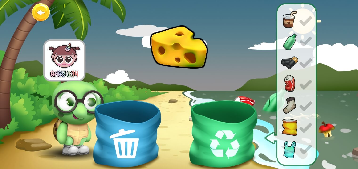 - အမှိုက် နှင့် ကစားစရာများကို ခွဲခြားထည့်သွင်းကာဆော့ကစားရမည်ဖြစ်သည်။